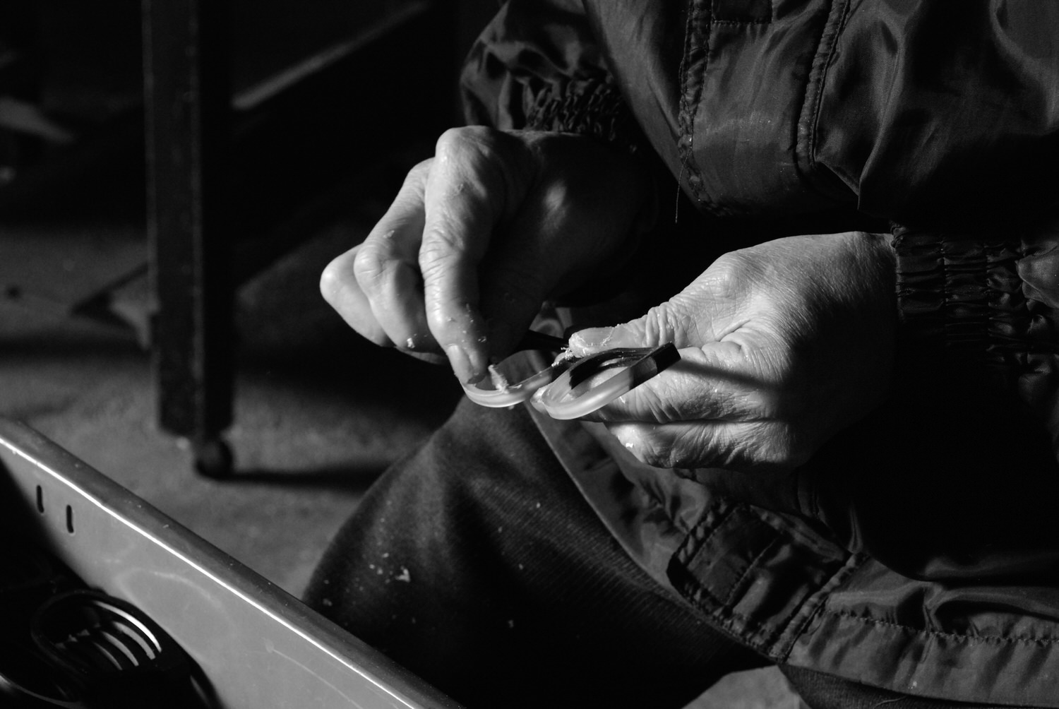デザイナーのイメージをディテールまできちんと形にするためには、眼鏡産地として伝統を受け継ぐ福井県の熟練職人の技が欠かせません。