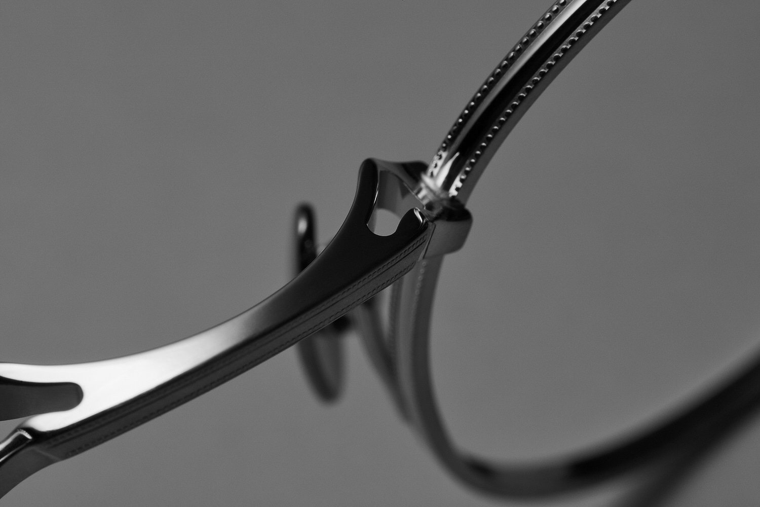 顔の目立つところに装着するアイウェアは、ラインがほんの1mm、面の角度がわずか1度異なるだけで、まったく印象が違ってきます。